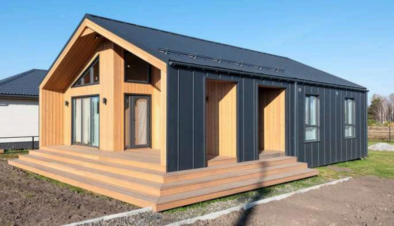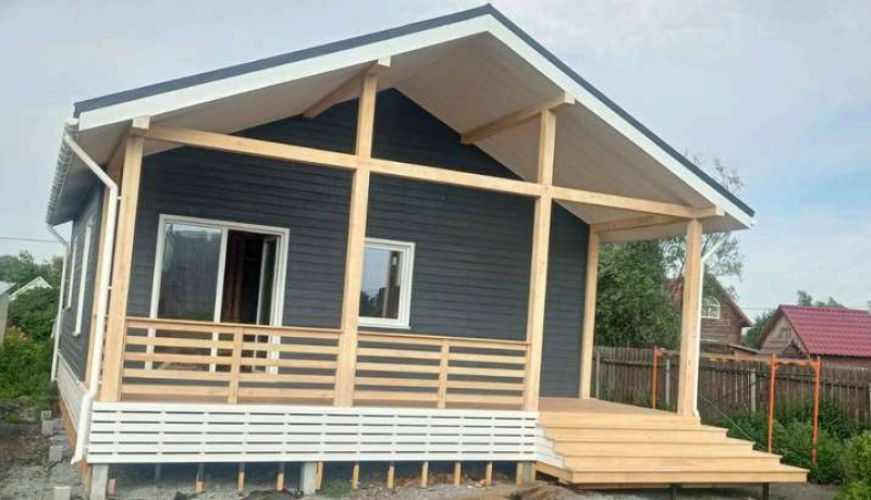 2. Готовый фасад дома выполненный из натуральных материалов.