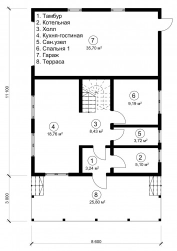• Длина 8.6 м