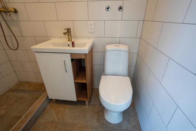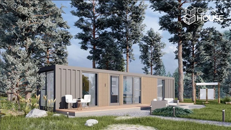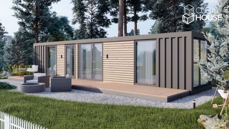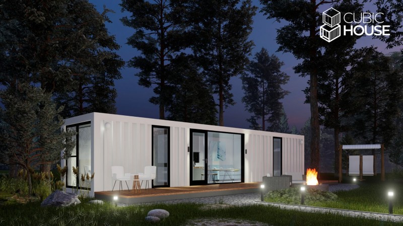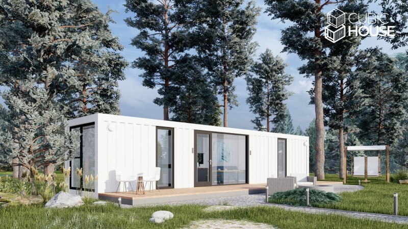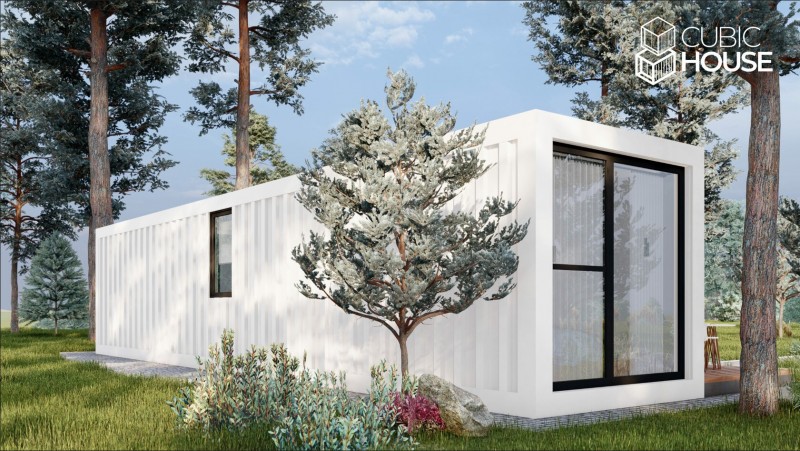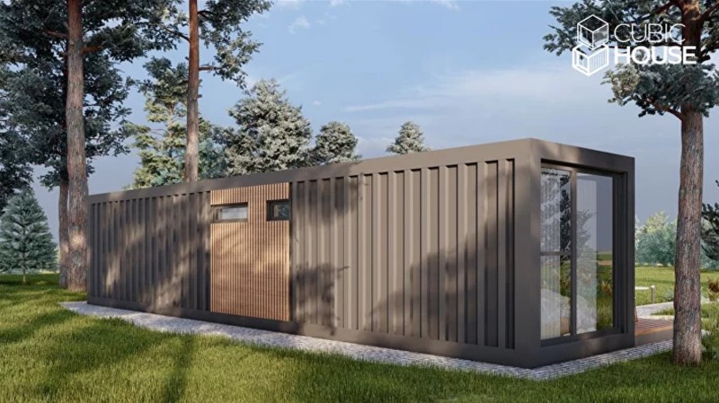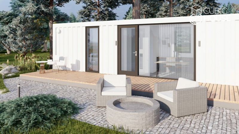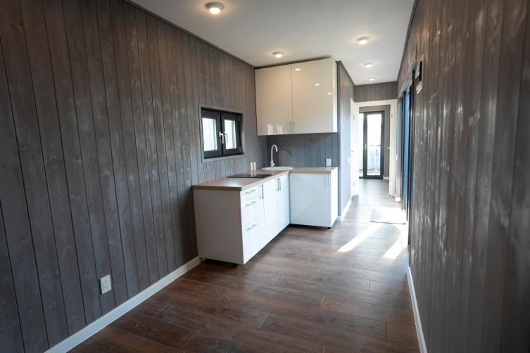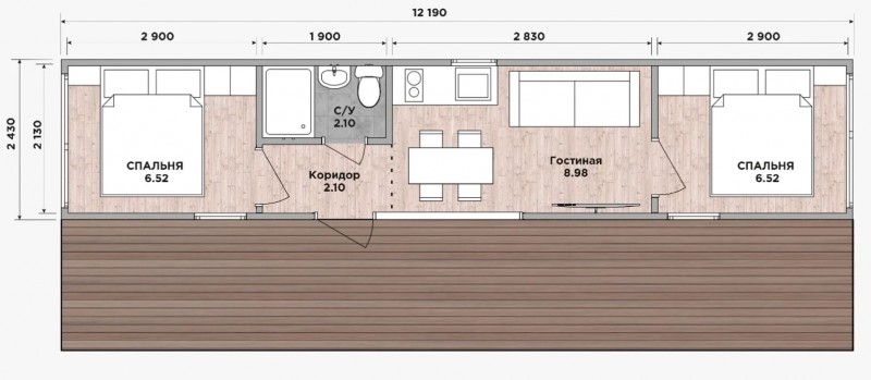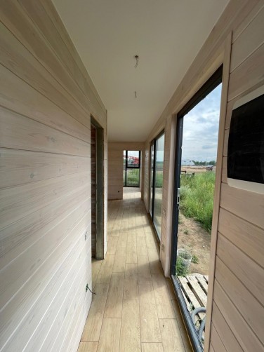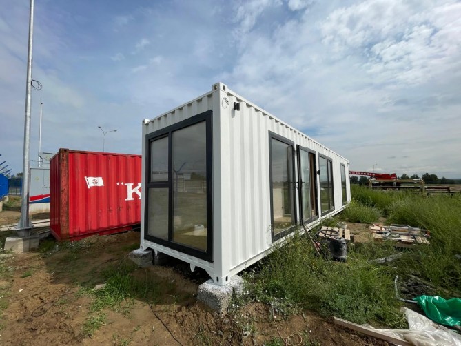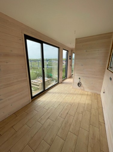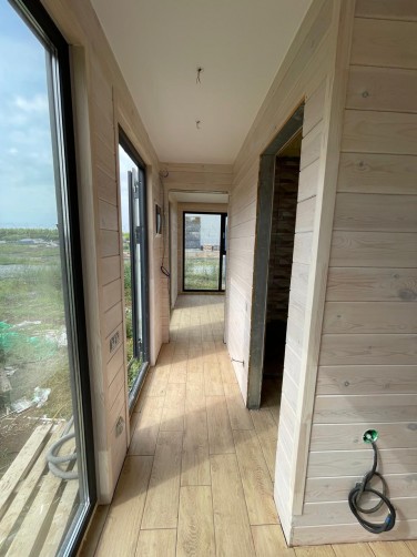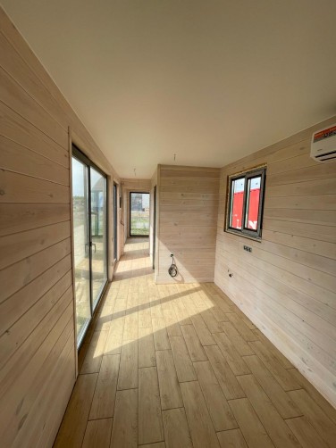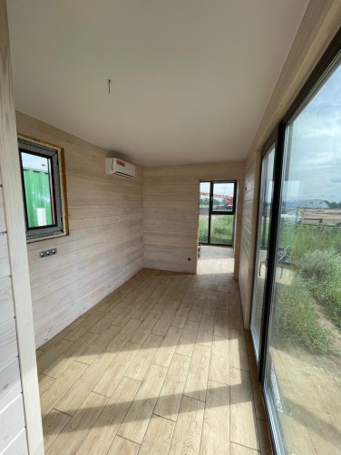 Модульный дом из морского контейнера. Кухня-гостинная и 2 отдельных спальни. Санузел в керамической плитке. Высота потолков 2,4 м