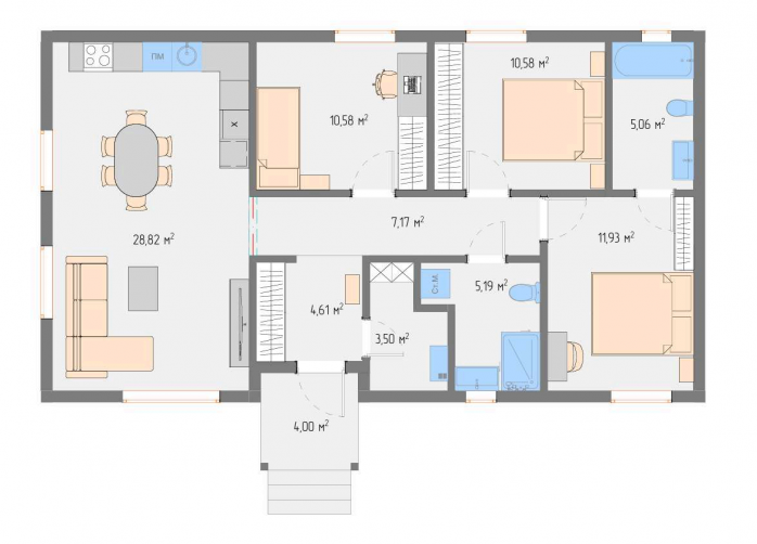 • Количество спален 3