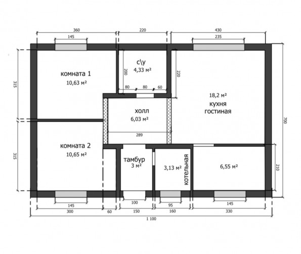 Котельная (3,13м2) — обеспечит дом теплом и горячей водой, а помещение (6,55м2) можно использовать под небольшую комнату, кабинет или прачечную.