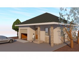 Дом предназначен для небольшой семьи. Внутреннее пространство дома функционально спланировано и разделено на две спальни, просторные кухню-гостиную и ванную комнату. Потолок в гостиной имеет переменную высоту от 2,9 до 4,5 м, а соразмерное окно создает ощущение простора и воздуха в помещении и сравнимо со «вторым светом». Этот проект идеально подойдёт для всех, кто предпочитает простые, функциональные и экономичные решения при выборе дома.