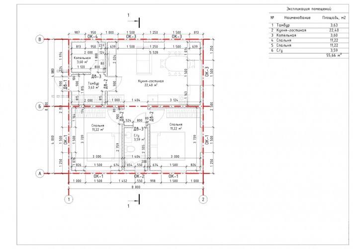 • Общая площадь 55 м2